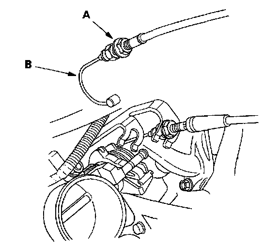 Cruise Control Actuator/Cable Replacement1. Loosen the locknut (A), then remove the cruise control cable (B) from the throttle linkage.
