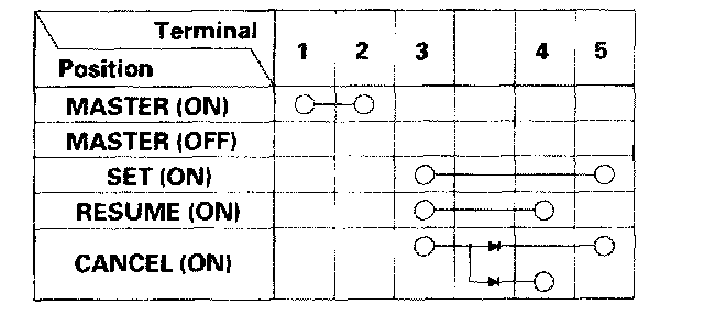 - If there is continuity, and it matches the table, but switch failure occurred on the cruise control unit input test, check and repair the wire harness on the switch circuit.