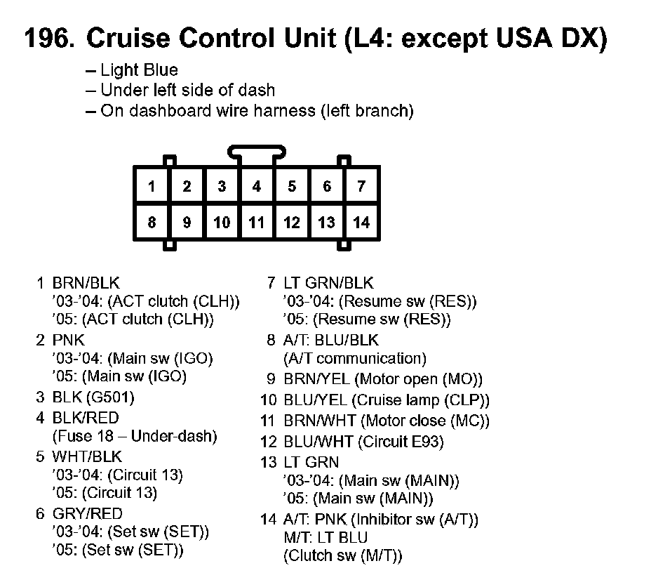 196. Cruise Control Unit (L4: Except USA DX):