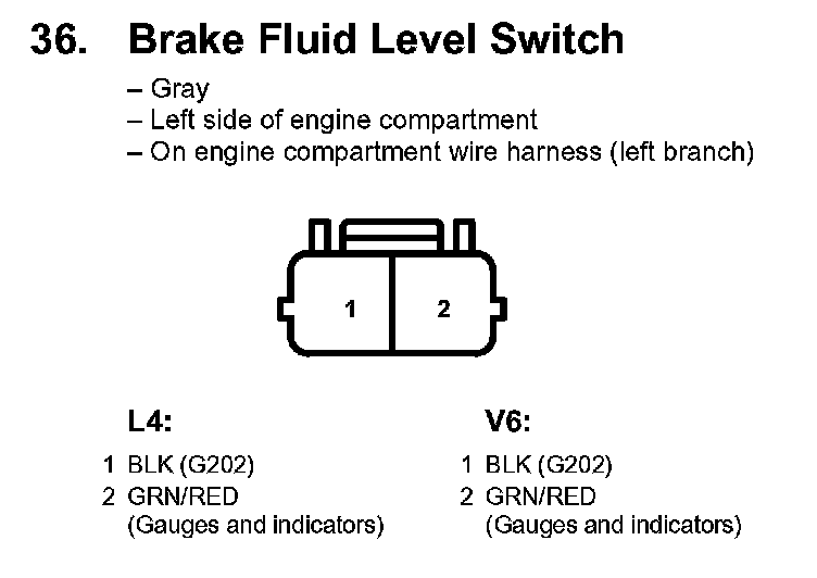 36. Brake Fluid Level Switch: