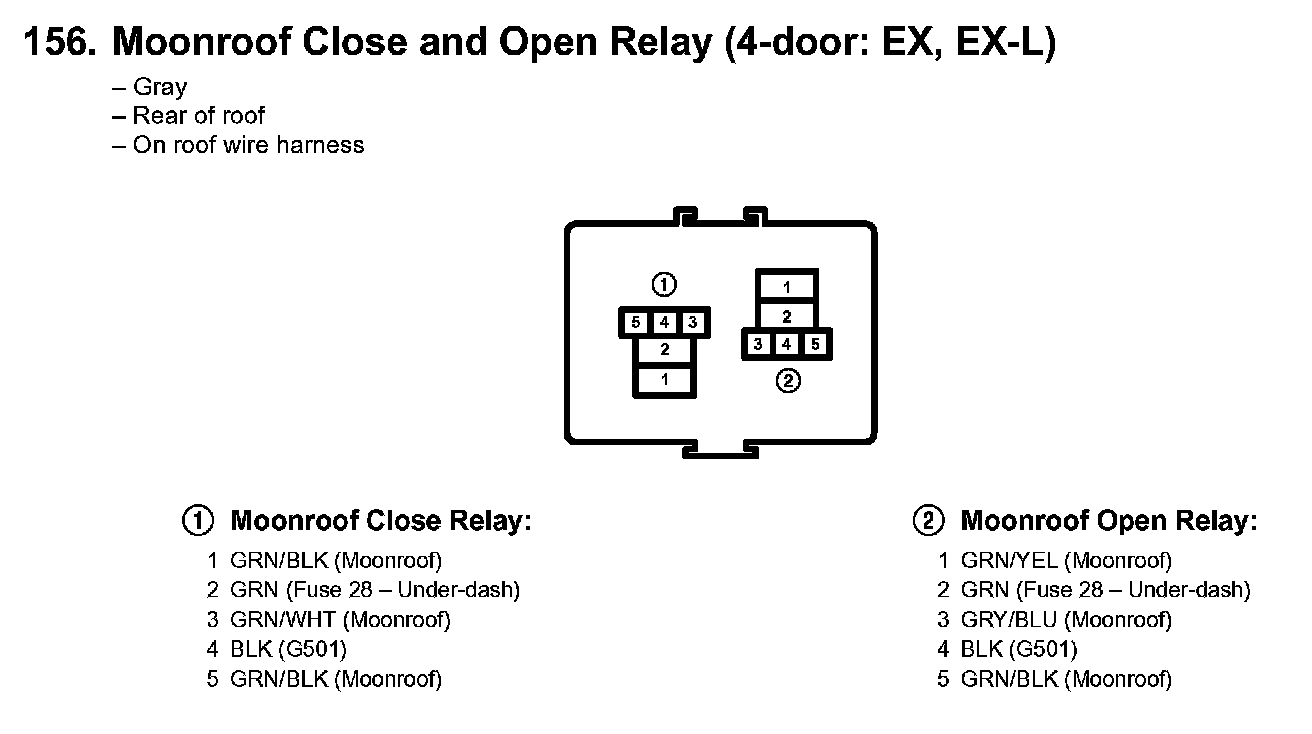 156. Moonroof Close And Open Relay (4-door: EX, EX-L):