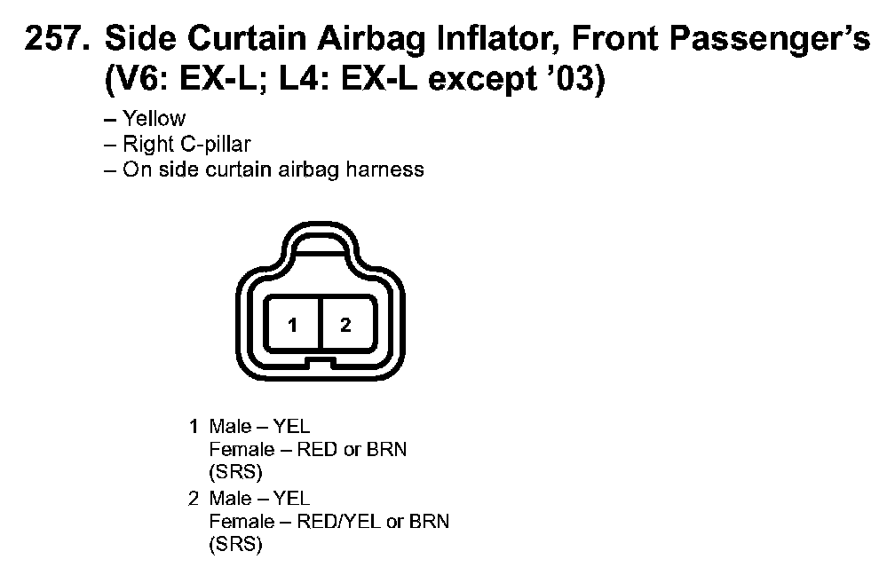 257. Side Curtain Airbag Inflator, Front Passenger's (V6: EX-L; L4: EX-L Except '03):