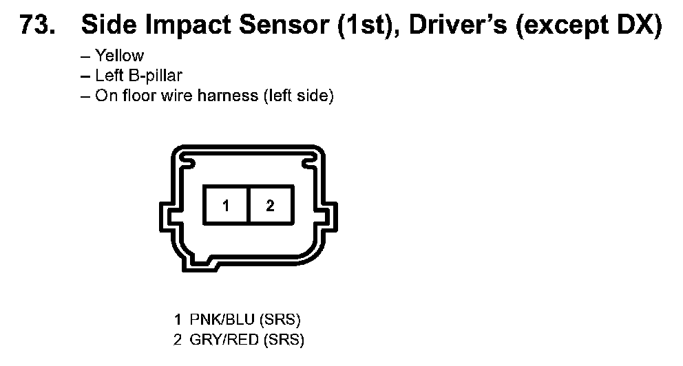 73. Side Impact Sensor (1st), Driver's (except DX):