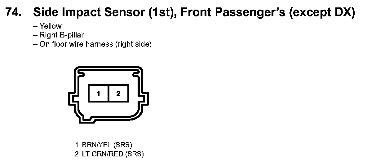 74. Side Impact Sensor (1st), Front Passenger's (except DX):