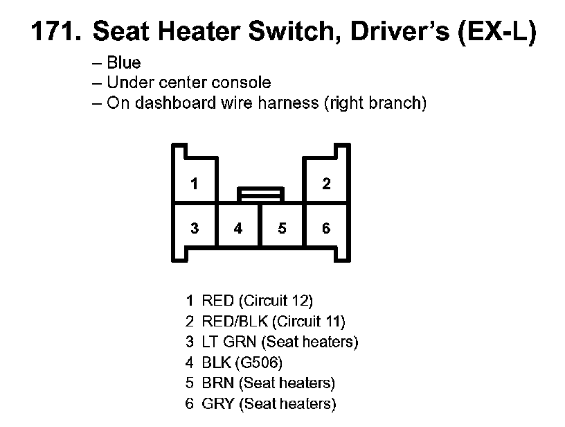 171. Seat Heater Switch, Driver's (EX-L):