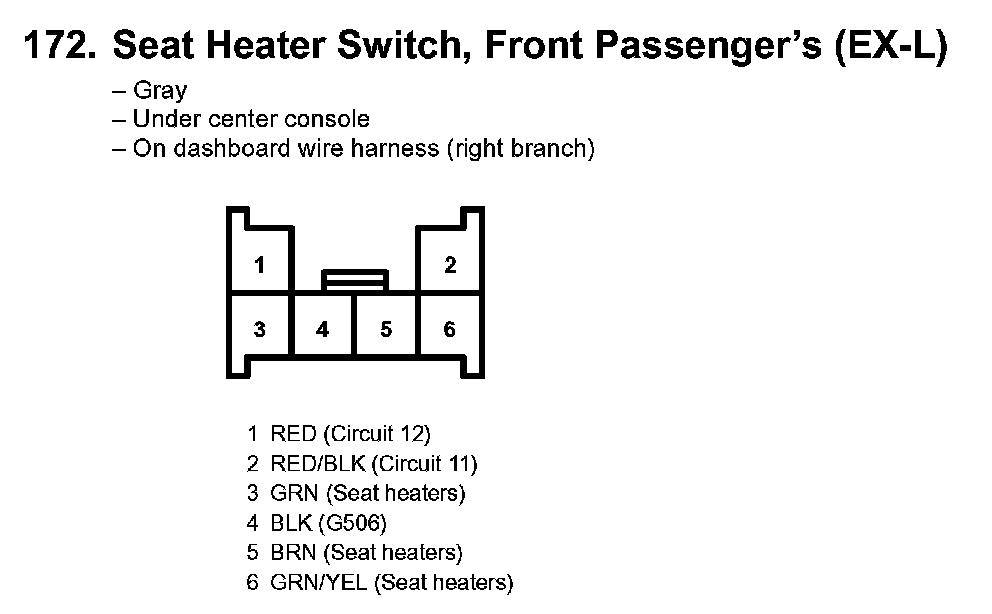 172. Seat Heater Switch, Front Passenger's (EX-L):