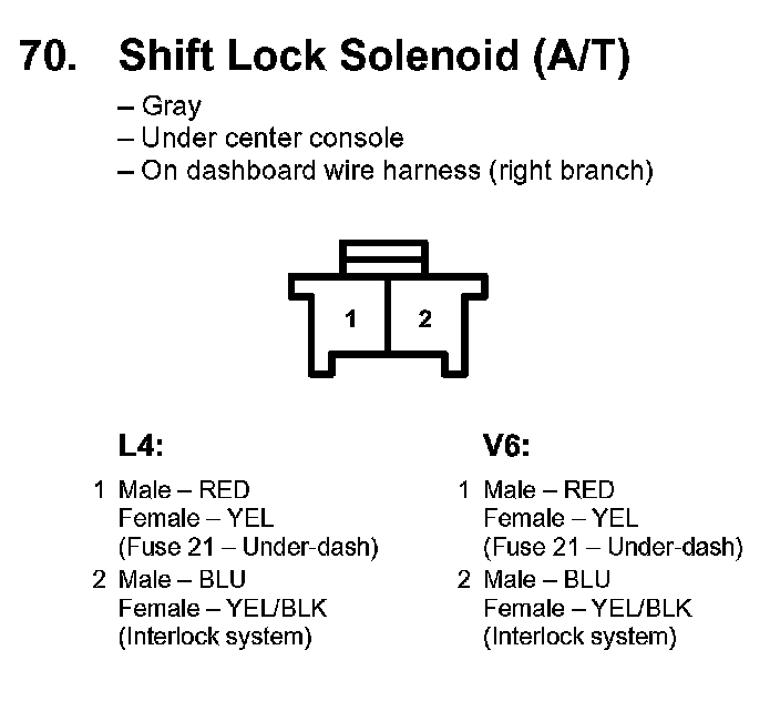 70. Shift Lock Solenoid (A/T):