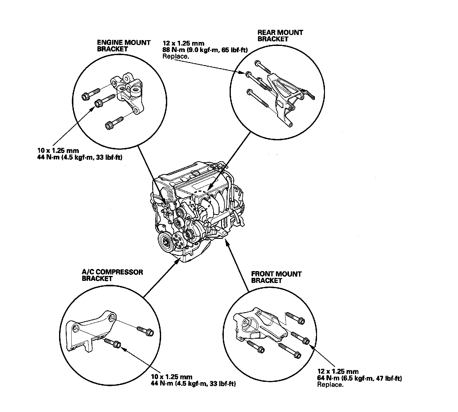 Engine Installation1. Install the accessory brackets and tighten their bolts to the specified torques.