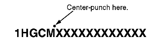 4. Center-punch a completion mark above the fifth character of the engine compartment VIN.