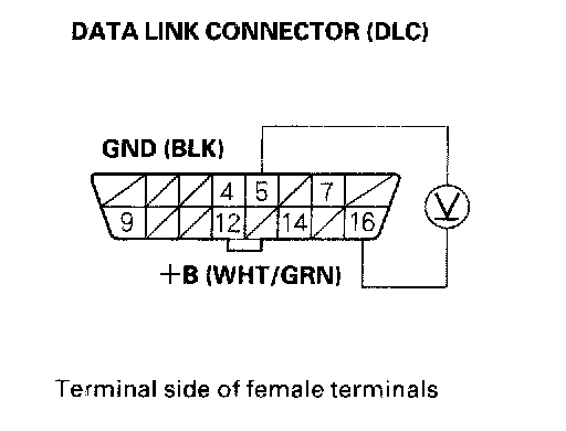 3. Measure voltage between DLC terminals No.5 and No.16.