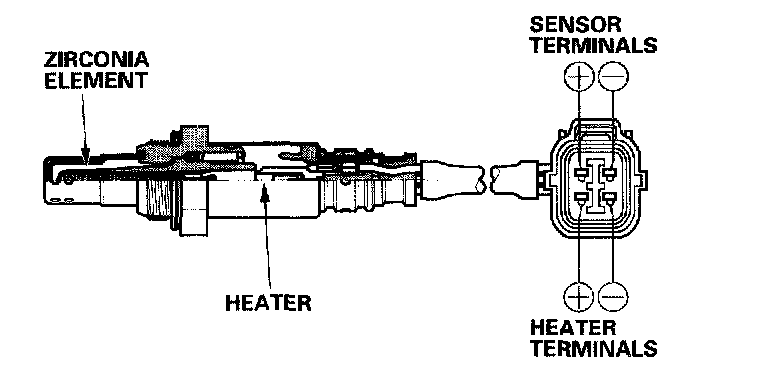 The secondary HO2S detects the oxygen content in the exhaust gas downstream of the three way catalytic converter (TWC), and sends signals to the ECM/PCM which varies the duration of fuel injection accordingly. To stabilize its output the sensor has an internal heater. The ECM/PCM compares the HO2S output with the A/F sensor output to determine catalyst efficiency. The secondary HO2S is on the TWC.