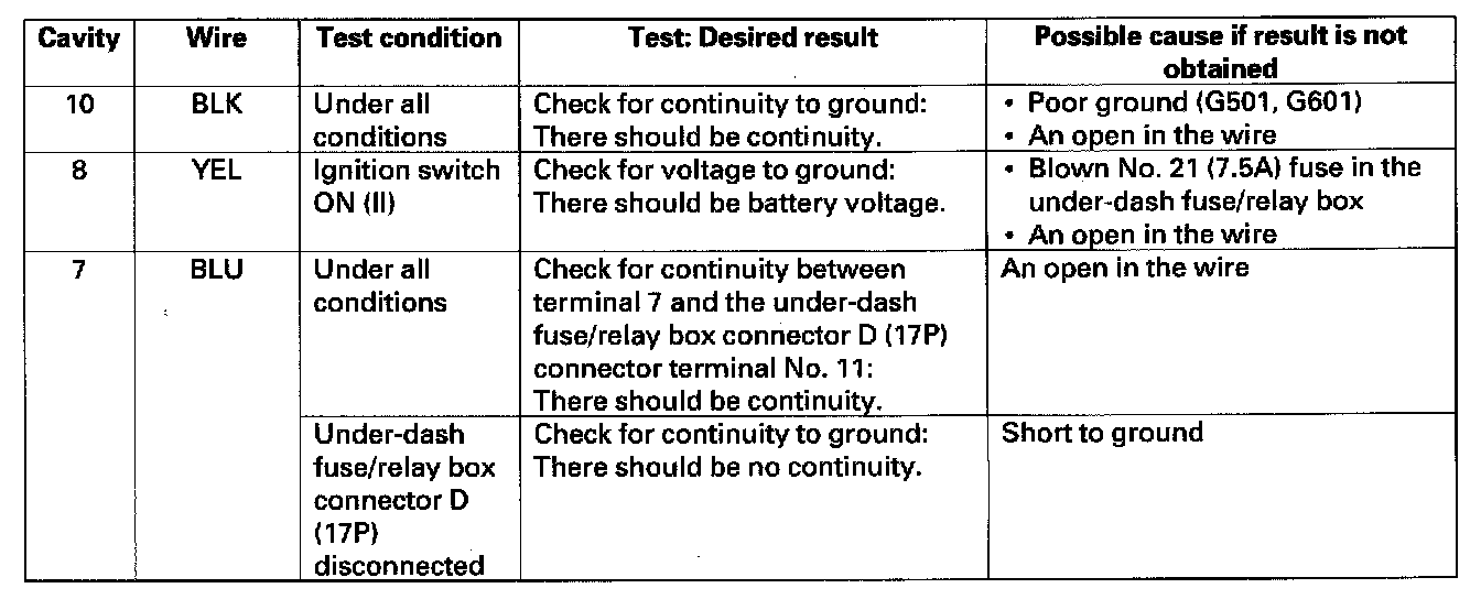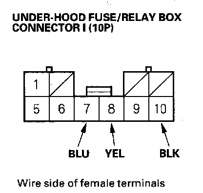 2. Disconnect the 10P connector from the under-hood fuse/relay box.