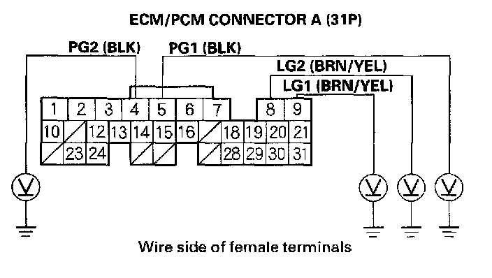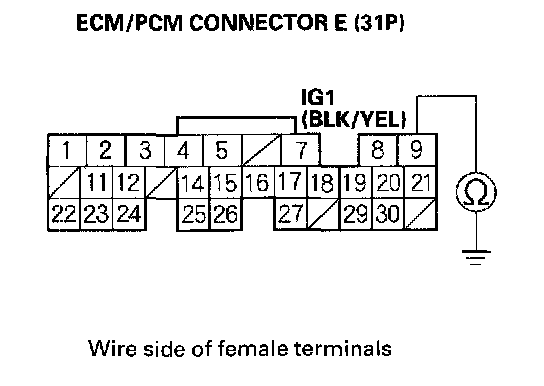 16. Check for continuity between ECM/PCM connector terminal E29 and body ground.