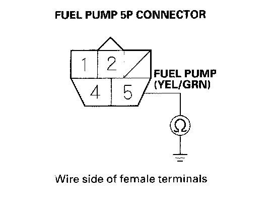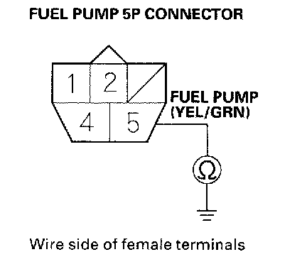 43. Check for continuity between fuel pump 5P connector terminal No.5 and body ground.