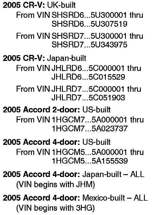 ^ Refer to page 14-193 of the 2005-06 CR-V Service Manual, page 14-194 of the 2003-06 Accord Service Manual, or