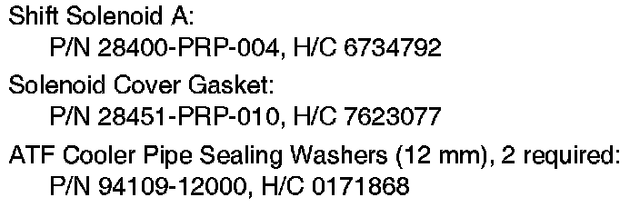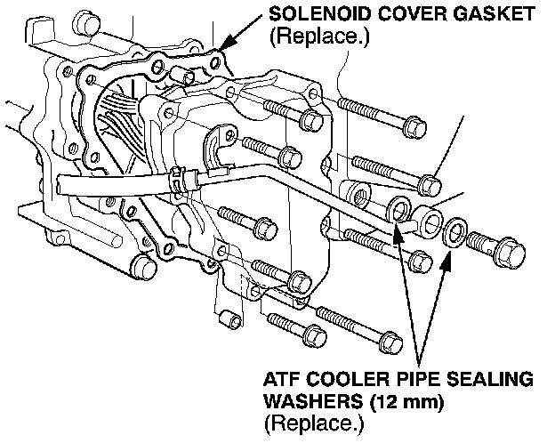 Replace the solenoid cover gasket and the ATF cooler pipe sealing washers during installation.