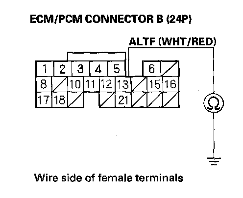 8. Check for continuity between body ground and ECM/PCM connector terminal B13.
