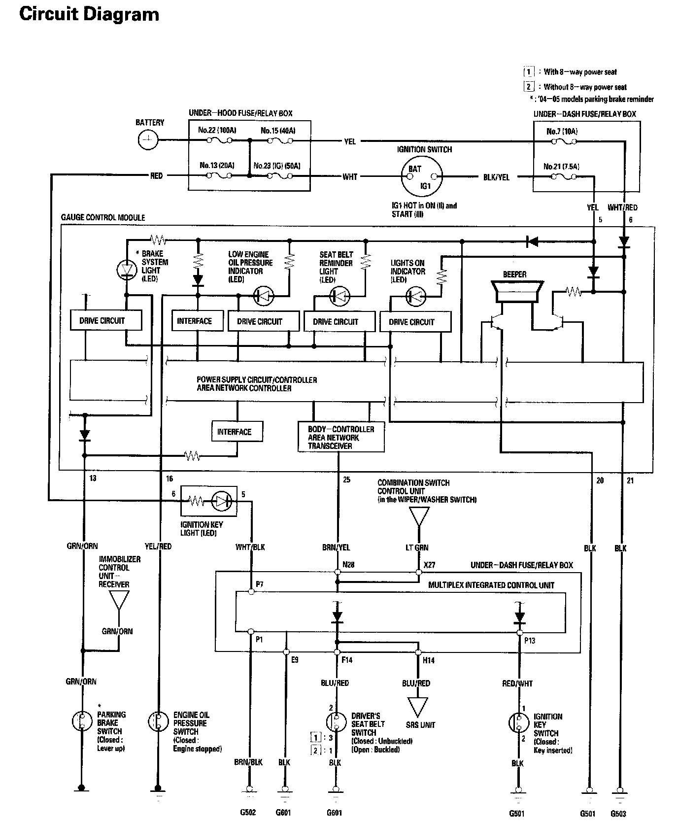Reminder Systems, Key Light Timer, and Engine Oil Pressure Indicator Systems - Circuit Diagram: