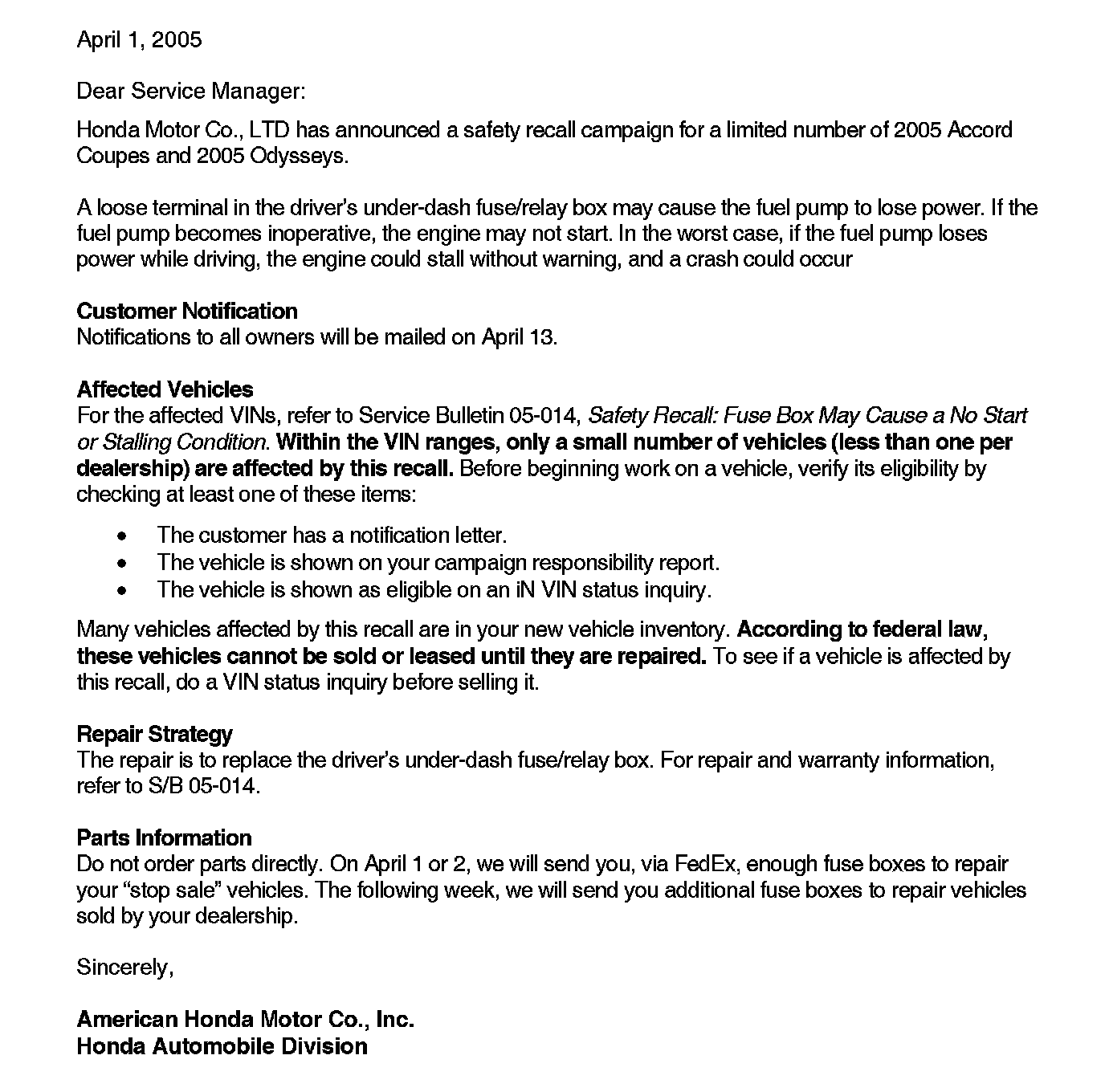 Recall - Fuse Box Replacement