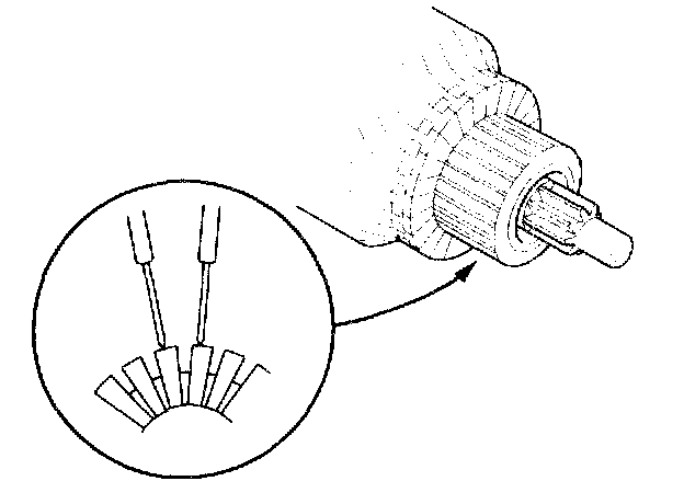 8. Check for continuity between the segments of the commutator. If an open circuit exists between any segments, replace the armature.