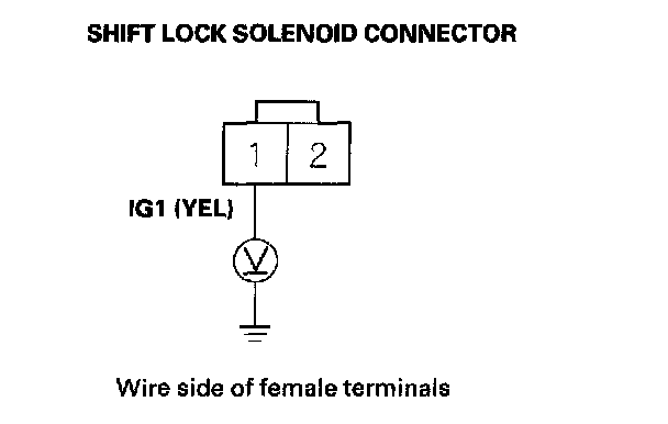 6. Measure the voltage between shift lock solenoid connector terminal No. 1 and body ground.