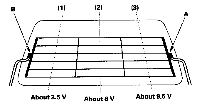 1. Check for voltage between the positive terminal (A) and body ground with the ignition switch and defogger switch ON.