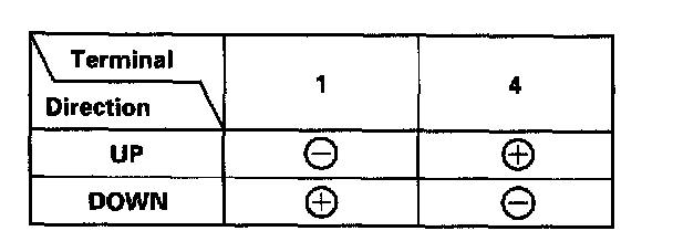 - Connect an analog voltmeter between the No. 2 (+) and No. 5 (-) terminals, and run the window motor down or up. The voltmeter needle should move back and forth alternately (a digital voltmeter should show the average voltage between 0 - 5 V).
