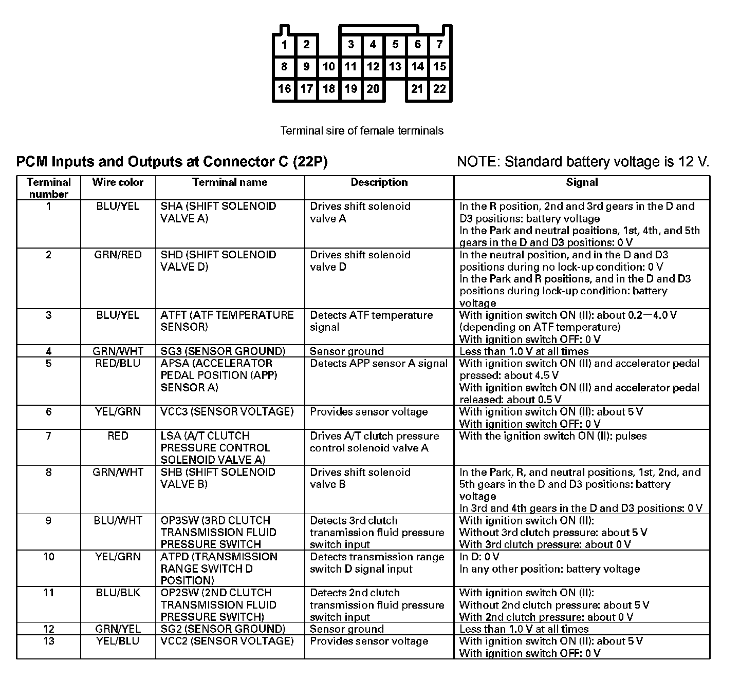 PCM Inputs And Outputs At Connector C (22P) Part 1: