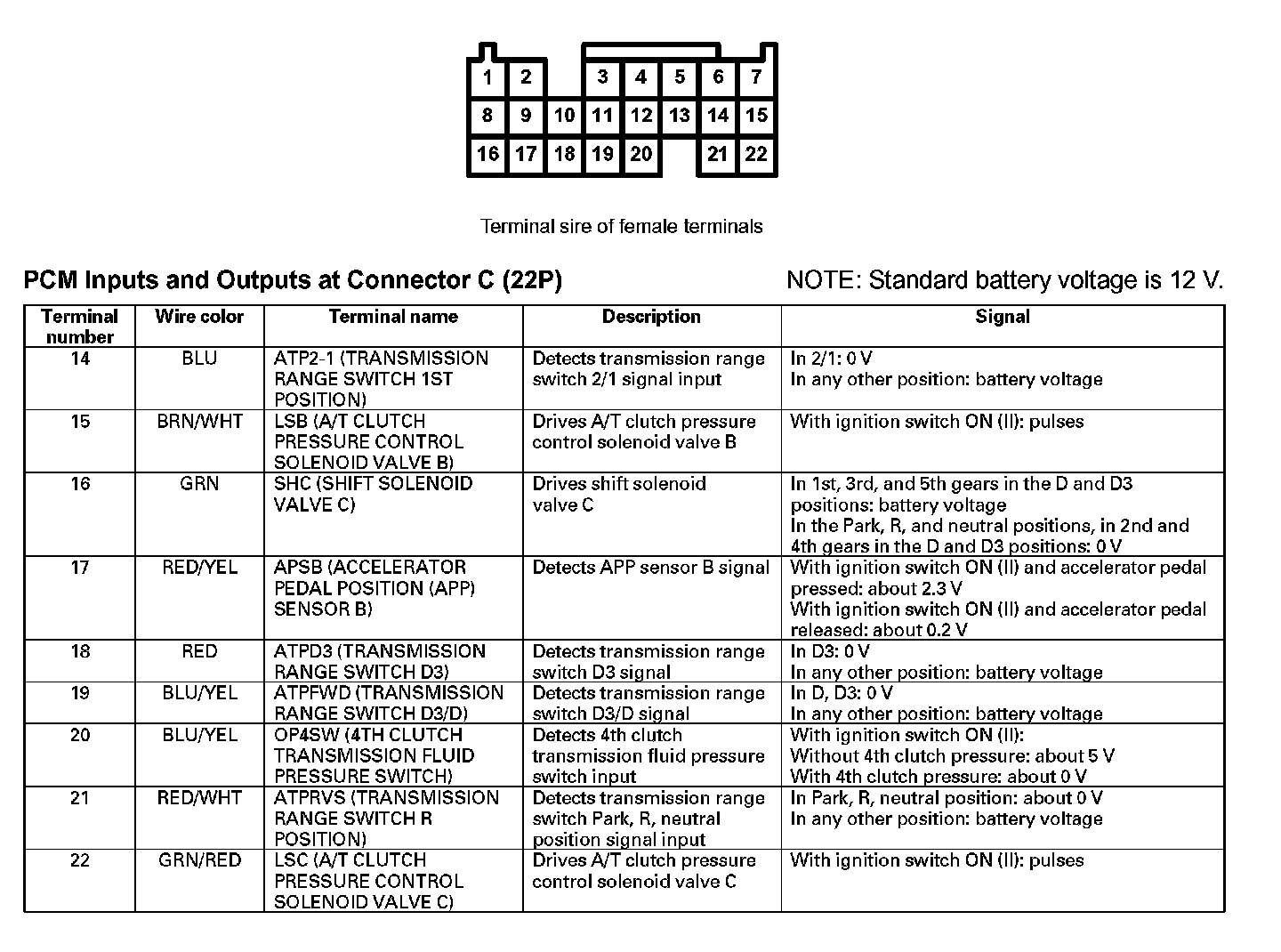 PCM Inputs And Outputs At Connector C (22P) Part 2: