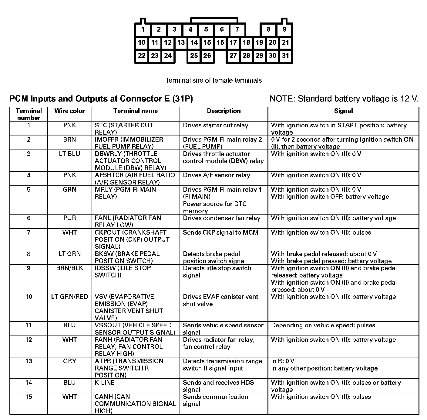PCM Inputs And Outputs At Connector E (31P) Part 1: