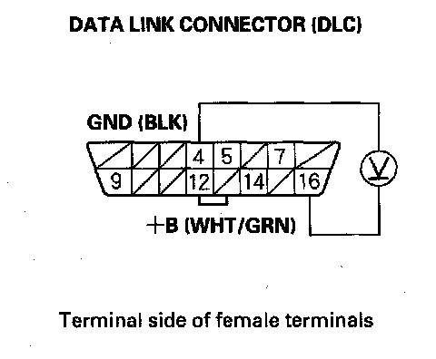2. Measure voltage between DLC terminals No.4 and No.16.