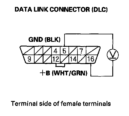 3. Measure voltage between DLC terminals No.5 and No.16.