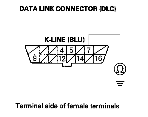 9. Check for continuity between DLC terminal No.7 and body ground.