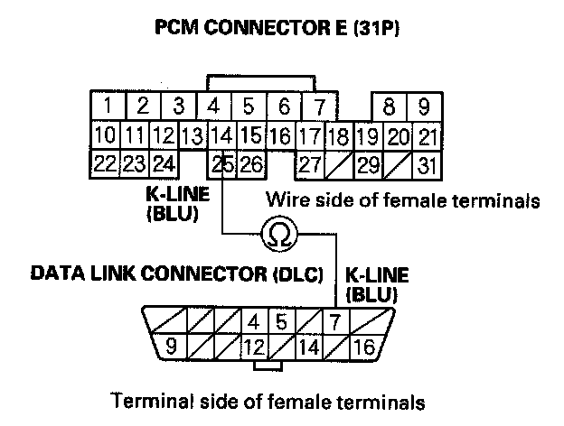 NO - Repair open in the wire between DLC terminal No.7 and the PCM (E14). After repairing the wire, check for Temporary DTCs or DTCs with the HDS and go to the indicated DTC's troubleshooting.