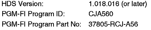 Update the PGM-FI software using HDS version 1.018.016 or later. To update the PGM-FI software, refer to Service Bulletin 01-023, Updating Control Units/Modules.