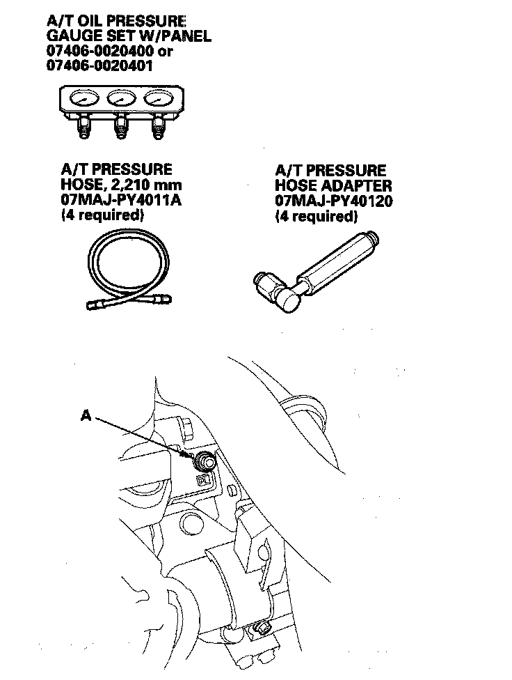 ^ A/T clutch pressure gauge set 07406-0020400 or 07406-0020401