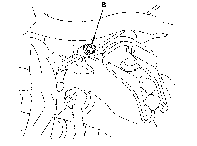 11. Connect the oil pressure gauge to the 1st clutch pressure inspection hole (B).