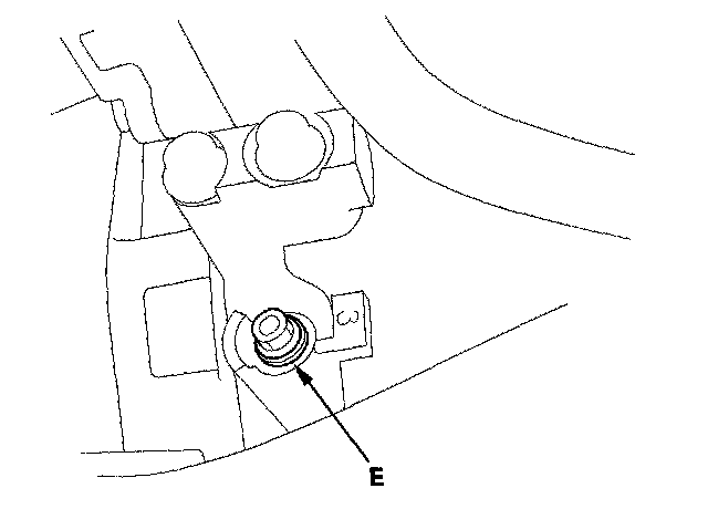 24. Hold in the 2 position at 2,000 rpm, shift into N for 1 second, then to the D3 position; the transmission will shift to 3rd gear, and measure the 3rd clutch pressure at the 3rd clutch pressure inspection hole (E) while holding the engine speed at 2,000 rpm.