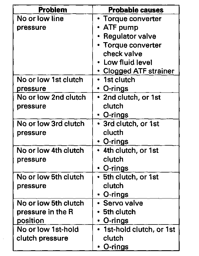 1. Before testing, be sure the transmission fluid is filled to the proper level.