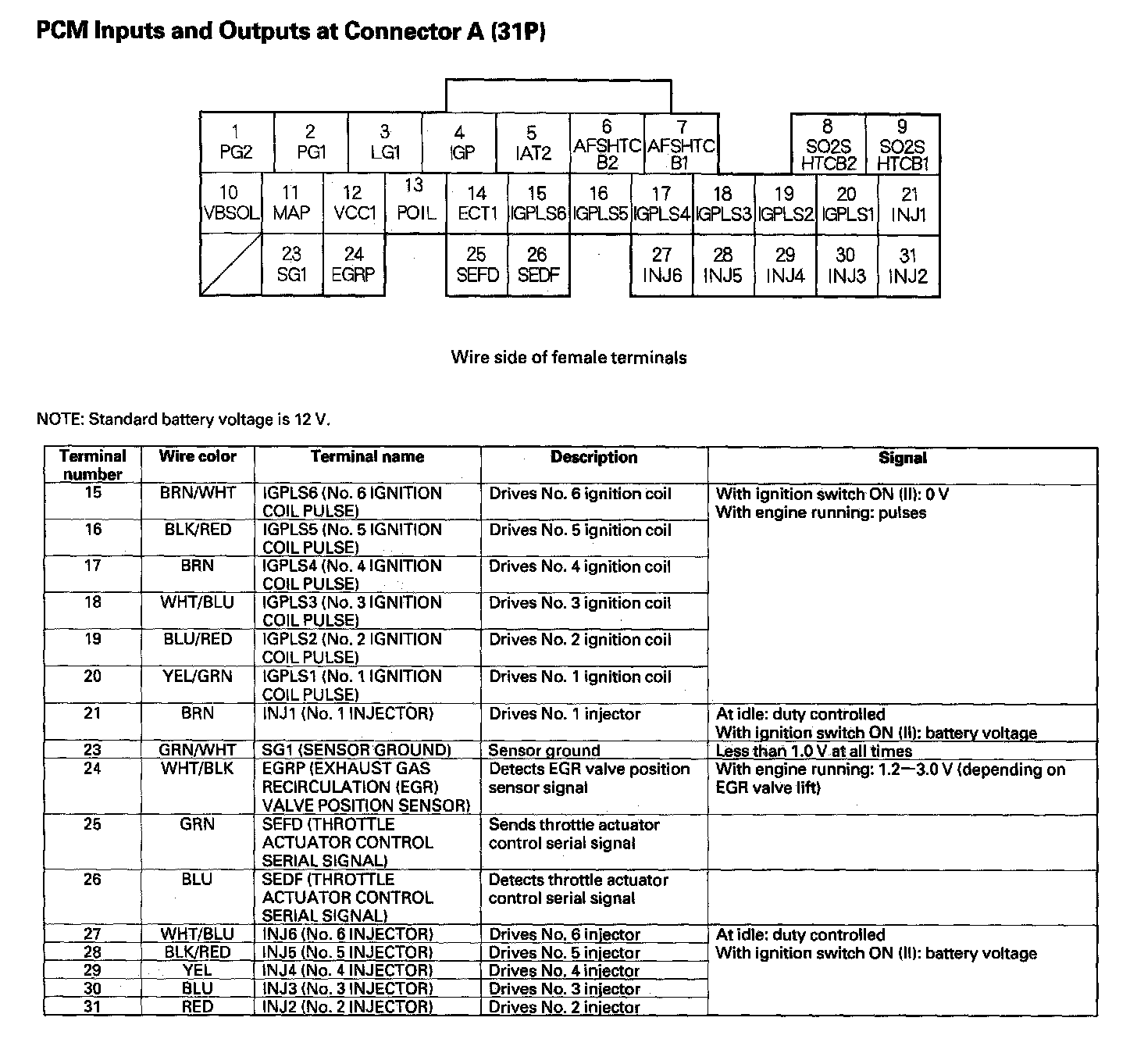 PCM Inputs And Outputs At Connector A (31P) Part 1: