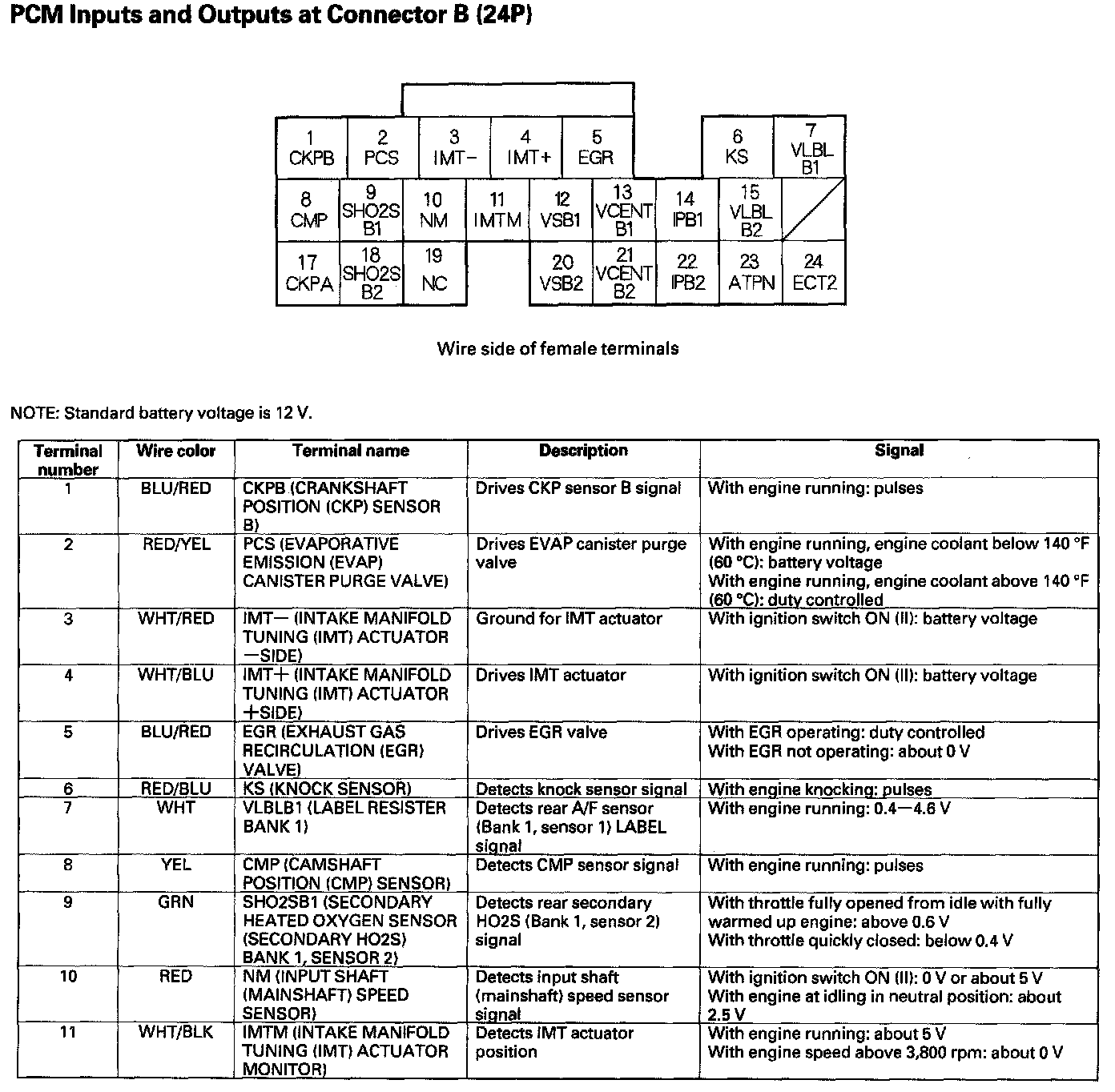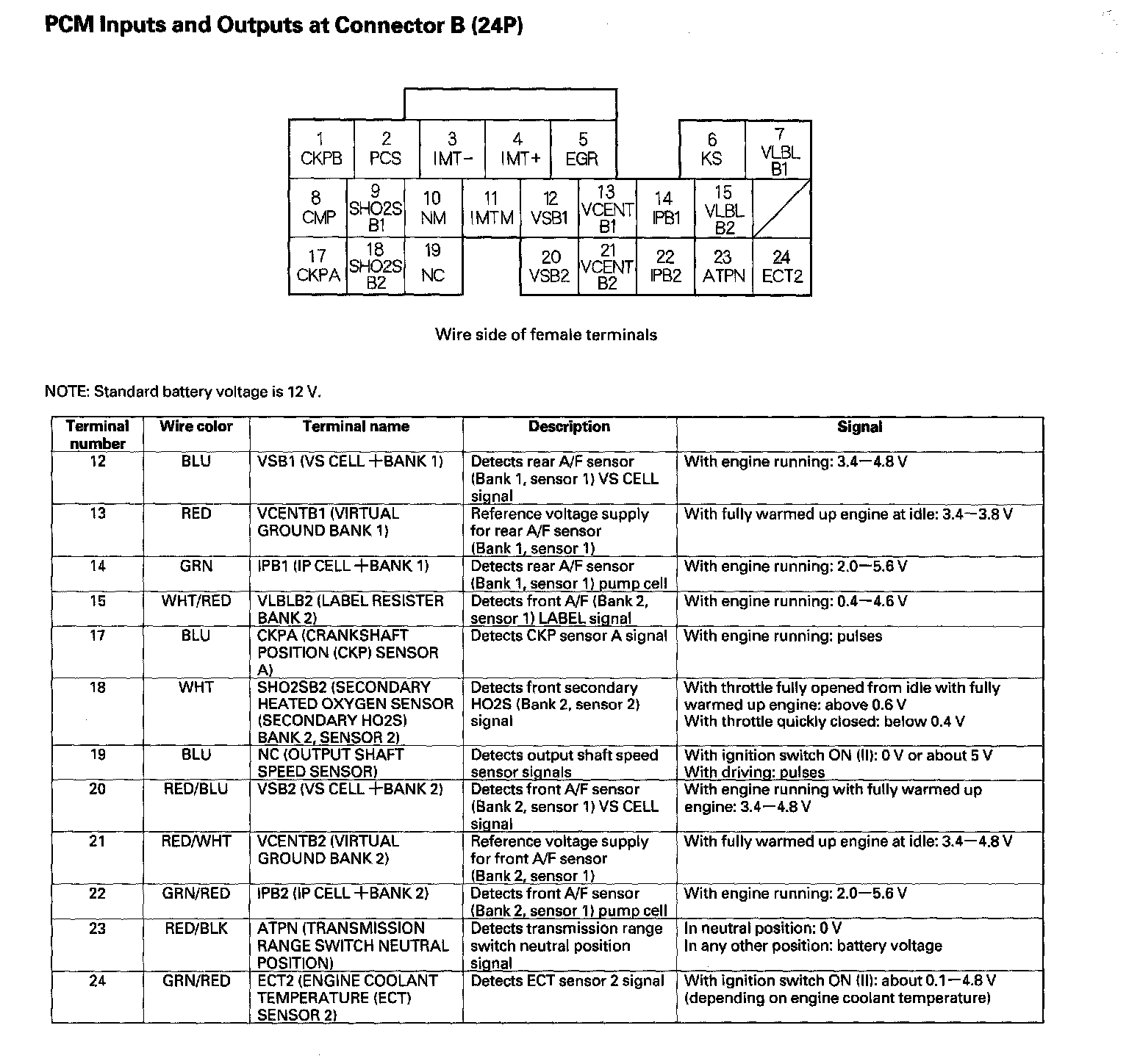 PCM Inputs And Outputs At Connector B (24P) Part 1: