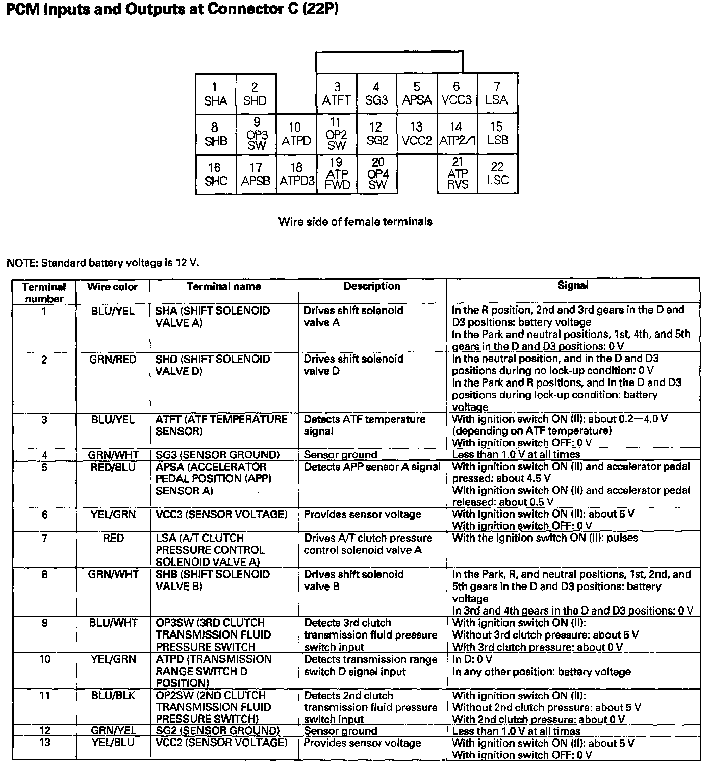 PCM Inputs And Outputs At Connector C (22P) Part 1: