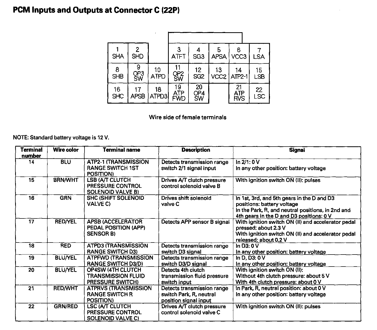 PCM Inputs And Outputs At Connector C (22P) Part 2: