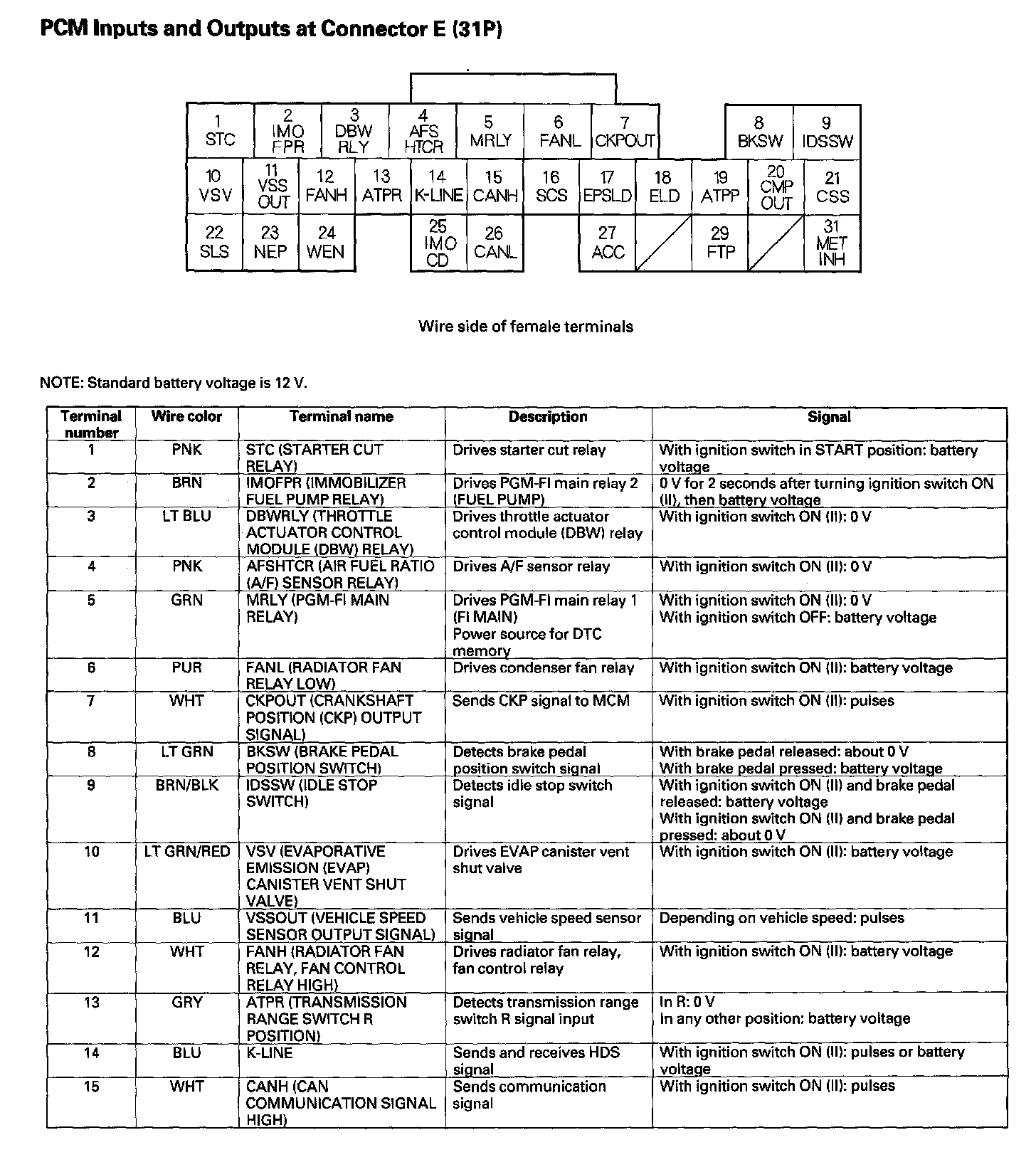 PCM Inputs And Outputs At Connector E (31P) Part 2: