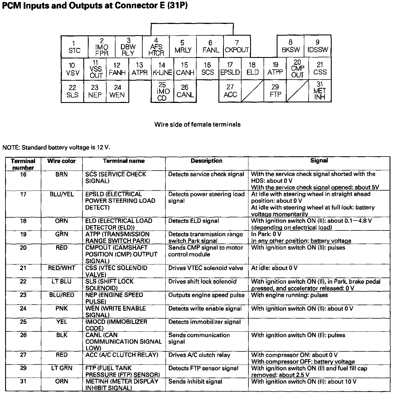 PCM Inputs And Outputs At Connector E (31P) Part 1: