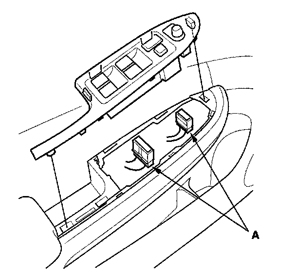 2. Disconnect the power mirror and power window switch connectors (A).