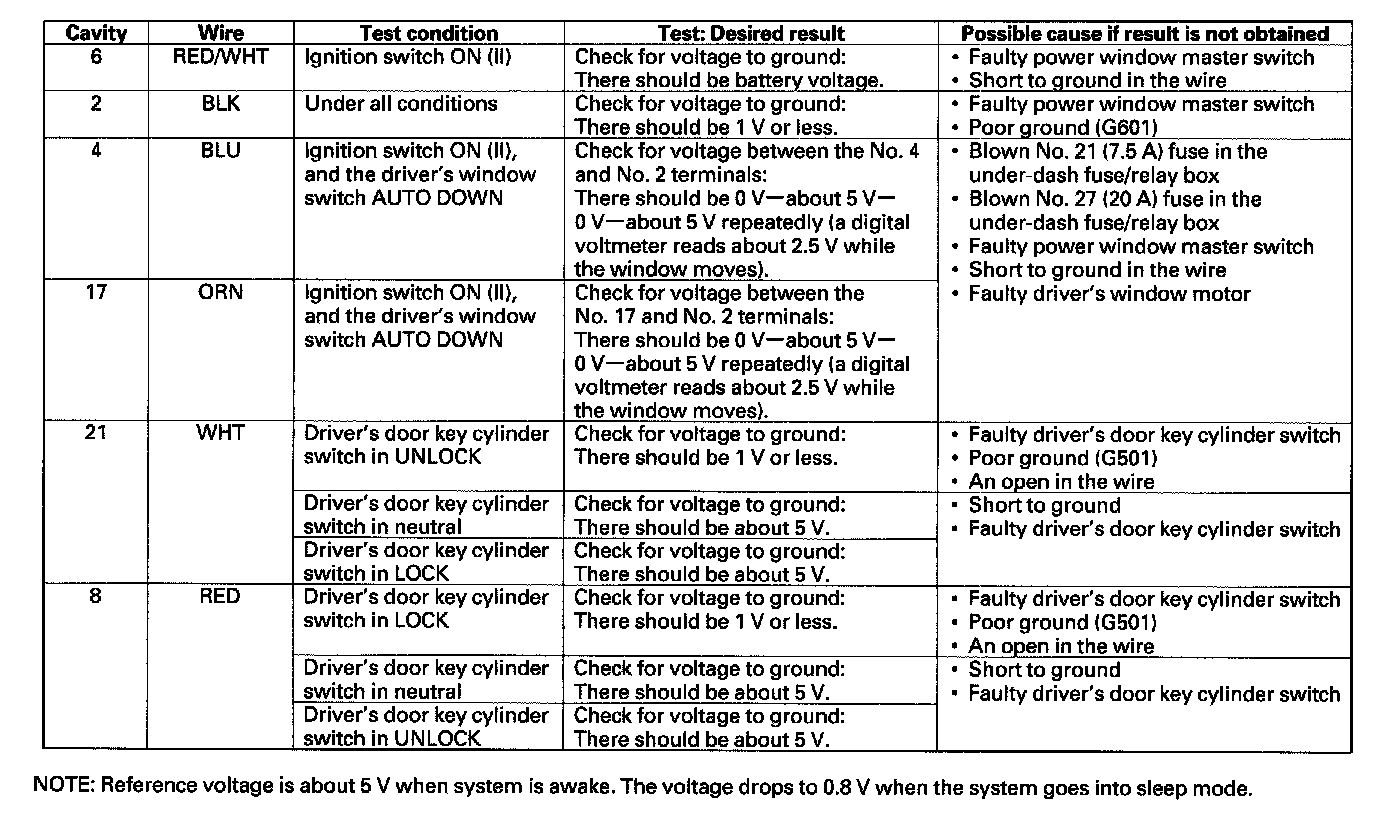 - If all the input tests prove OK, the control unit must be faulty; replace the power window master switch.