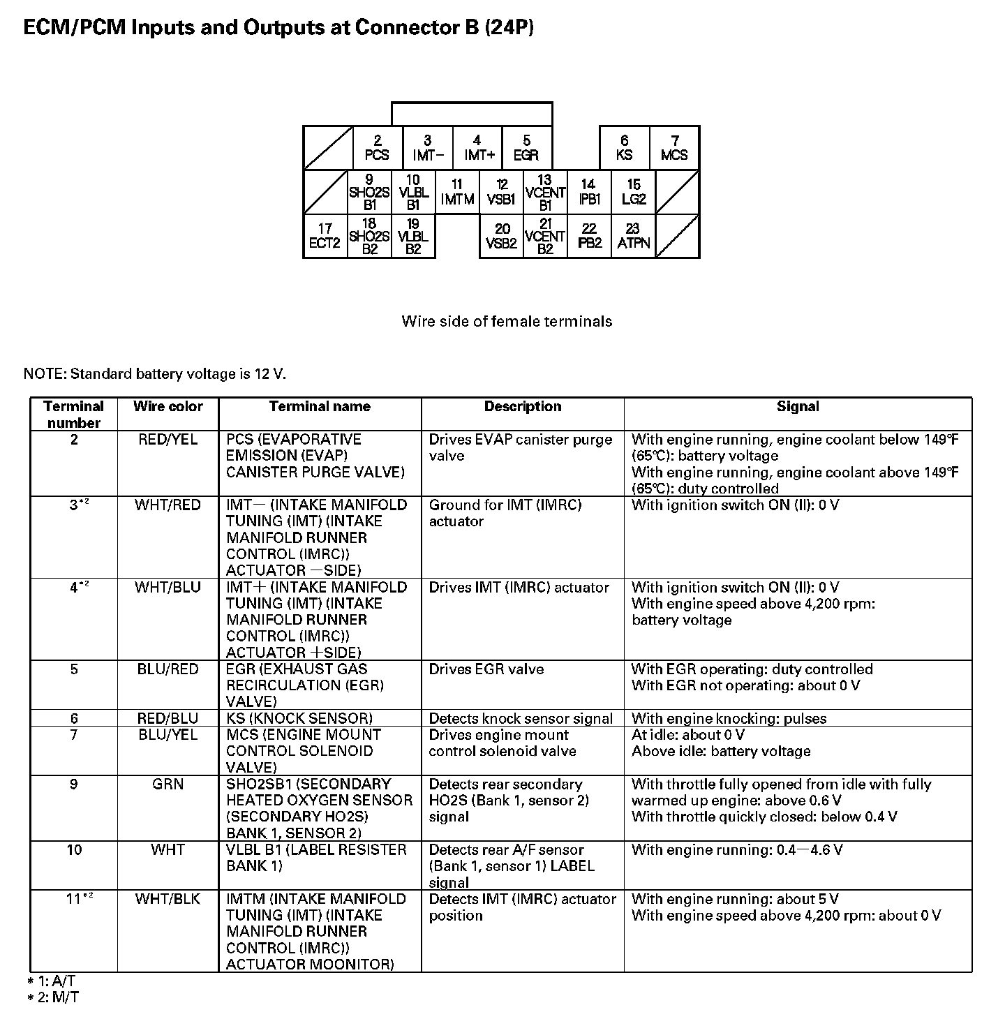 ECM/PCM Inputs And Outputs At Connector B (24P) Part 1: