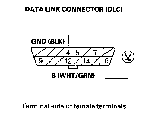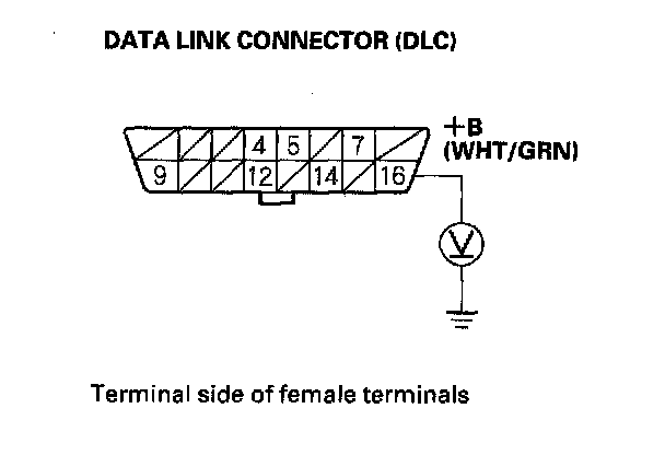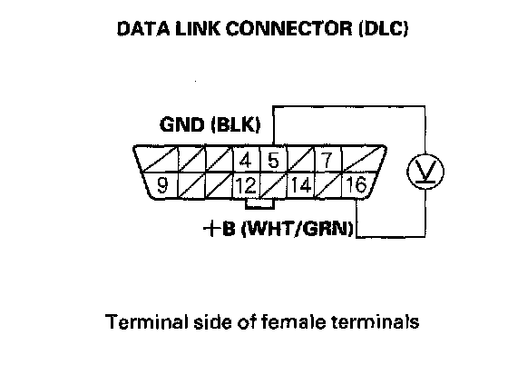 1. Measure voltage between DLC terminal No.16 and body ground.