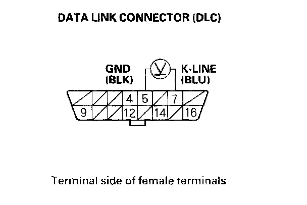 15. Measure voltage between DLC terminals No.5 and No.7.
